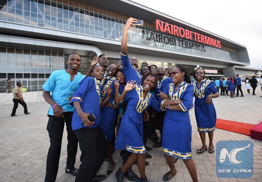 Performers pose for photos at Nairobi Terminus of Mombasa-Nairobi Standard Gauge Railway (SGR) in Nairobi, capital of Kenya, May 31, 2017. (Xinhua/Chen Cheng)