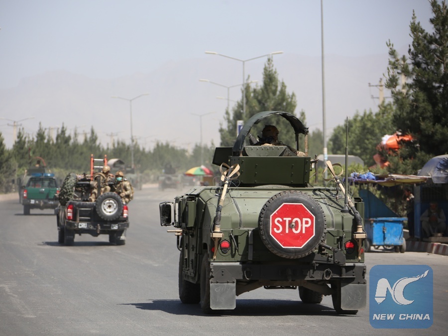 Afghan security force members leave the site of an attack in Kabul, capital of Afghanistan, on May 30, 2018. (Xinhua/Rahmat Alizadah)