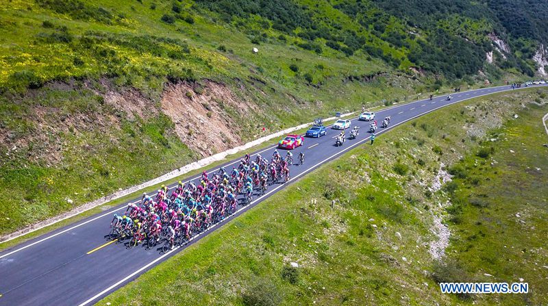 Cyclists compete in the third stage of the Tour of Qinghai Lake in northwest China's Qinghai Province, on July 24, 2018. (Xinhuanet Photo by Jia Haiyuan)