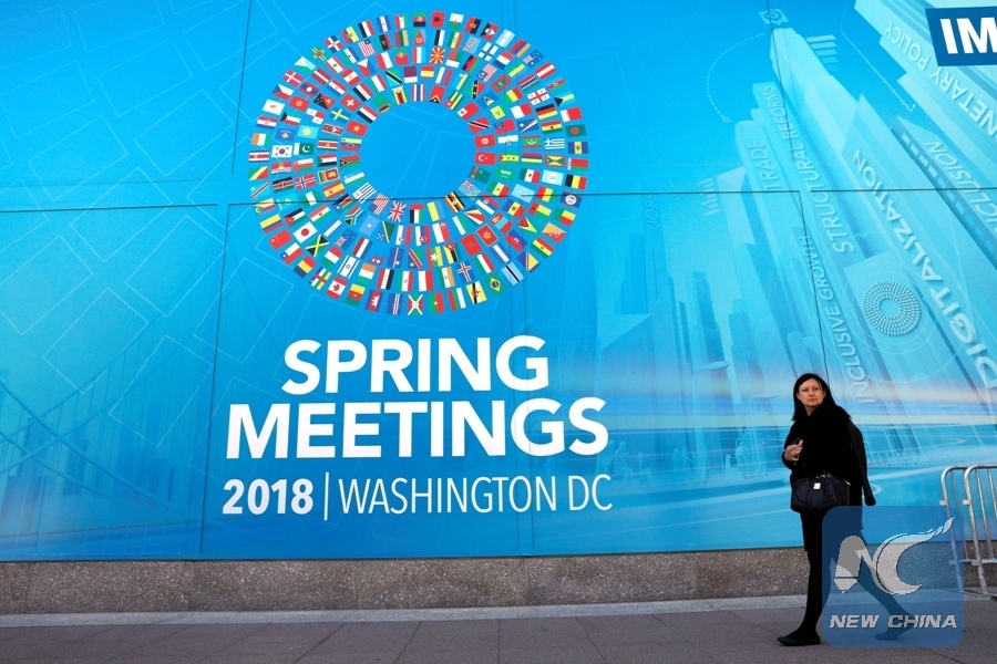 A woman walks outside the International Monetary Fund headquartersbuilding during the IMF/World Bank spring meeting in Washington, the United States, April 20, 2018. (REUTERS Photo)