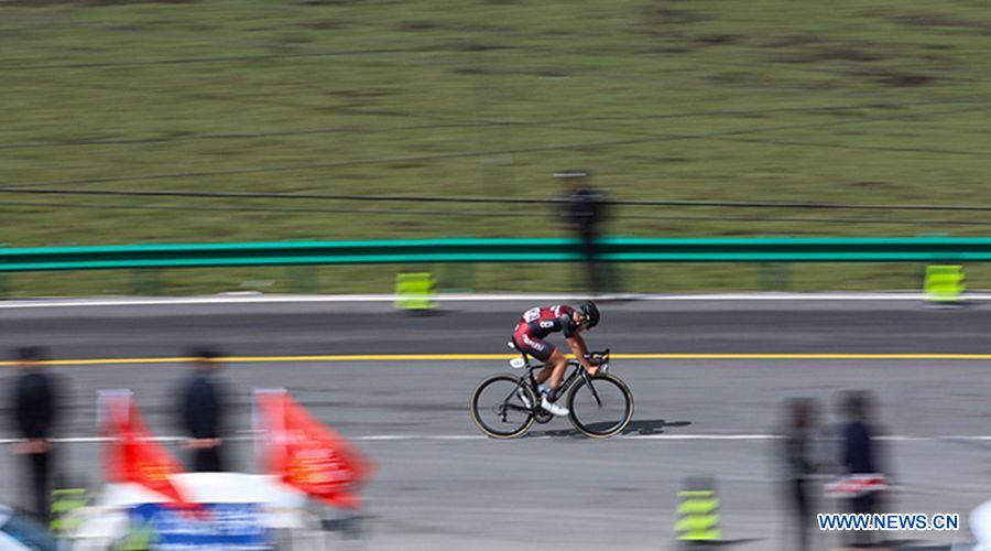 Cyclists compete in the eighth stage of the Tour of Qinghai Lake in northwest China's Gansu Province on July 29, 2018. (Xinhuanet Photo by Jia Haiyuan)