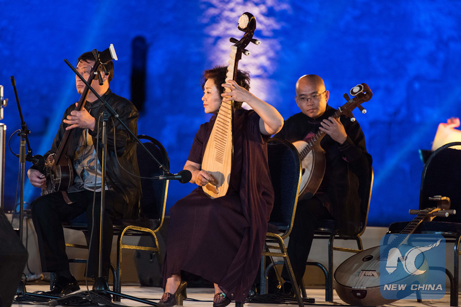 A folk music concert, performed by the Forbidden City Chamber Orchestra of the Chinese Conservatory of Music, is held in Cairo's renowned Saladin Citadel on August 13, 2017. (Xinhua photo)