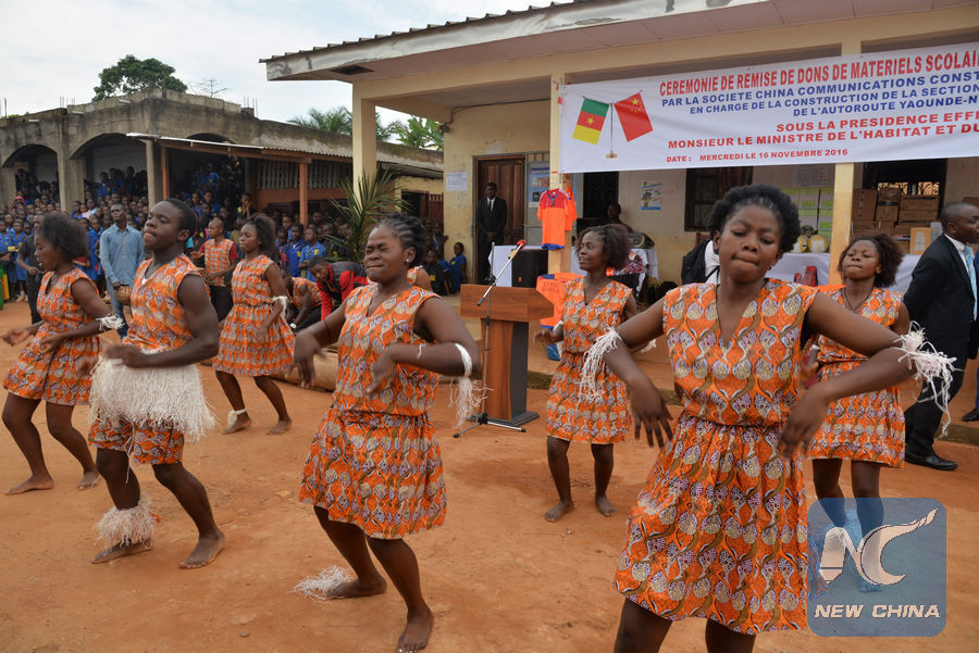 Locals perform a traditional dance during a Chinese firm's donation ceremony in Yaounde, capital of Cameroon in 2016. (Xinhua file photo)