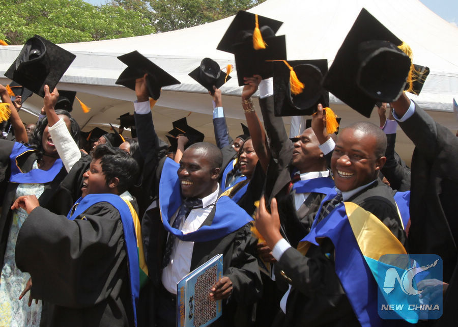 Zimbabwean students celebrate their graduation at Harare Institute of Technology (HIT) in Harare, capital of Zimbabwe. (Xinhua file photo)