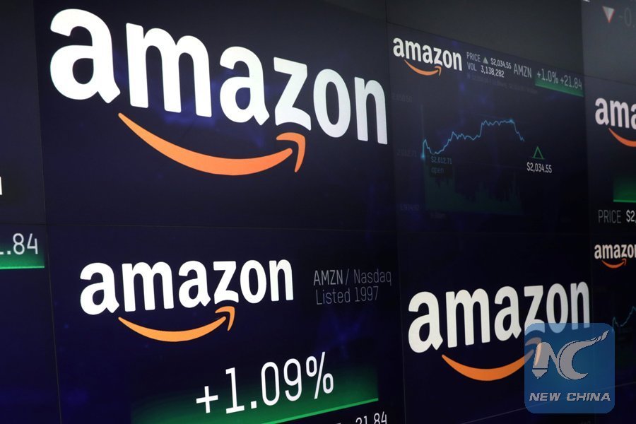The Amazon.com logo and stock price information is seen on screens at the Nasdaq Market Site in New York City, New York, U.S., Sept. 4, 2018. (Xinhua/REUTERS)