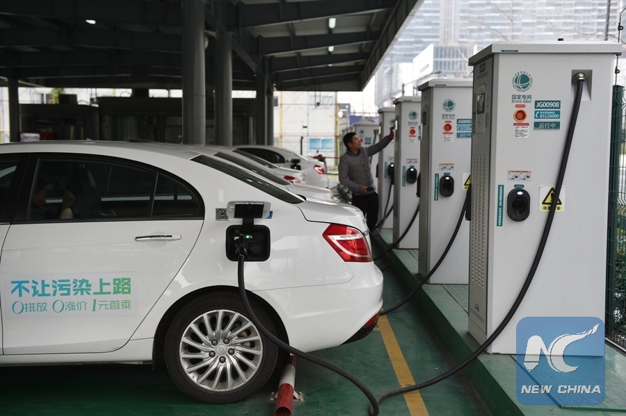 File Photo: A driver charges his electric car at a charging station in Hangzhou City, east China's Zhejiang Province, Dec. 29, 2016. (Xinhua/Huang Zongzhi)