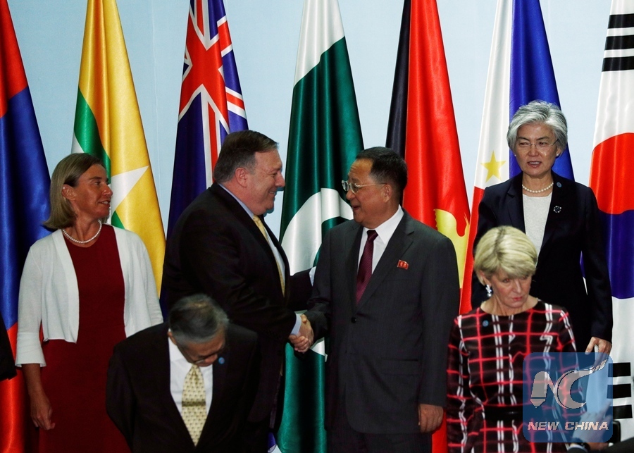 U.S. Secretary of State Mike Pompeo shakes hands with Democratic People's Republic of Korea's Foreign Minister Ri Yong Ho at the Asean Regional Forum in Singapore, Aug. 4, 2018. (REUTERS Photo)