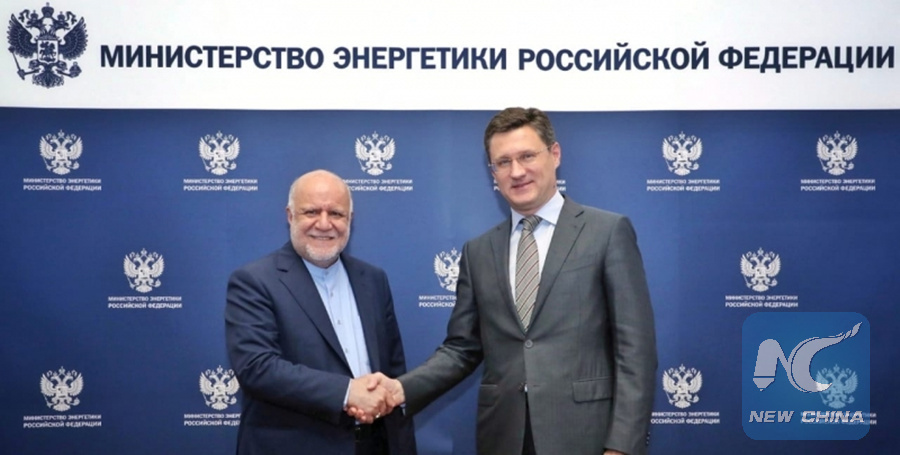 MOSCOW, Oct. 15 (Xinhua) -- Russian and Iranian energy ministers on Monday discussed potential further regulations in oil production under the deal reached between the Organization of the Petroleum Exporting Countries (OPEC) and non-OPEC producers, the Russian Energy Ministry said.