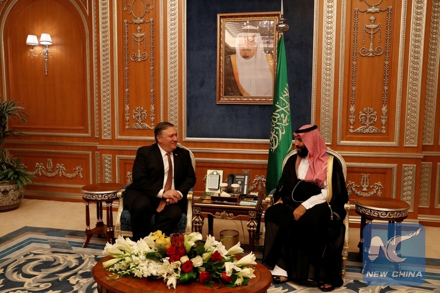 U.S. Secretary of State Mike Pompeo meets with the Saudi Crown Prince Mohammed bin Salman during his visit in Riyadh, Saudi Arabia, Oct. 16, 2018. (Xinhua/REUTERS)