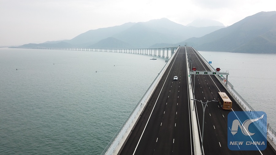 HONG KONG, Oct. 24 (Xinhua) -- "It's such a huge construction! Remarkable!" said Hong Kong resident Lau To-dong, who was looking forward to riding on the world's longest cross-sea bridge.