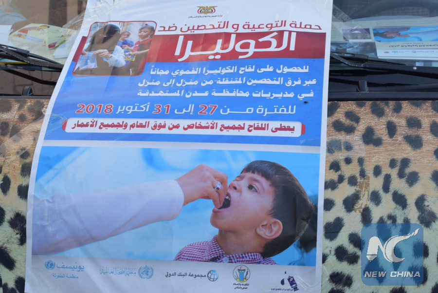 ADEN, Yemen, Oct. 28 (Xinhua) -- A large oral vaccination campaign against cholera was launched on Saturday by Yemeni authorities in cooperation with the World Health Organization (WHO) in the southern port city of Aden, in an attempt to fight the recent comeback of the epidemic.