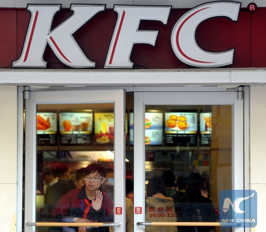 File Photo: A student walks out of a restaurant of Kentucky Fried Chicken (KFC) in Shanghai, east China, Oct. 31, 2011. (Xinhua/Niu Yixin)