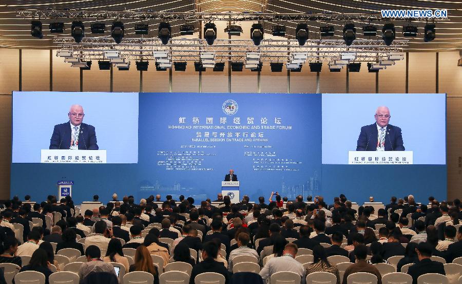 Ukrainian First Deputy Prime Minister Stepan Kubiv speaks at the Parallel Session on Trade and Opening of the Hongqiao International Economic and Trade Forum in Shanghai, east China, Nov. 5, 2018. (Xinhua/Yin Gang)
