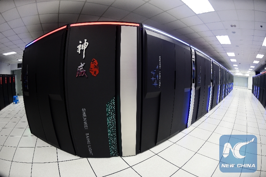 File photo taken on June 20, 2016 shows Sunway TaihuLight, a new Chinese supercomputer, in Wuxi, east China's Jiangsu Province. (Xinhua/Li Xiang)
