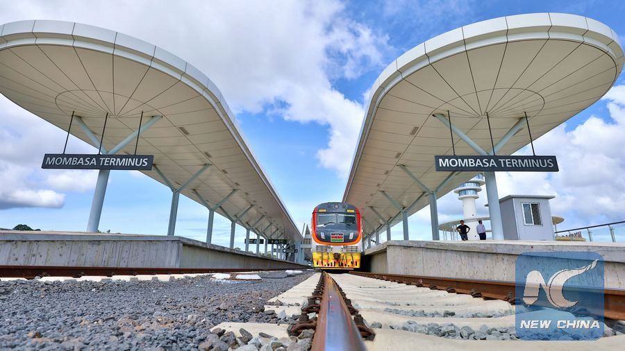 File photo shows a train of the Mombasa-Nairobi Standard Gauge Railway (SGR) is seen at the Mombasa Railway Station in Mombasa, Kenya, on June 1, 2018. (Xinhua/Wang Teng)