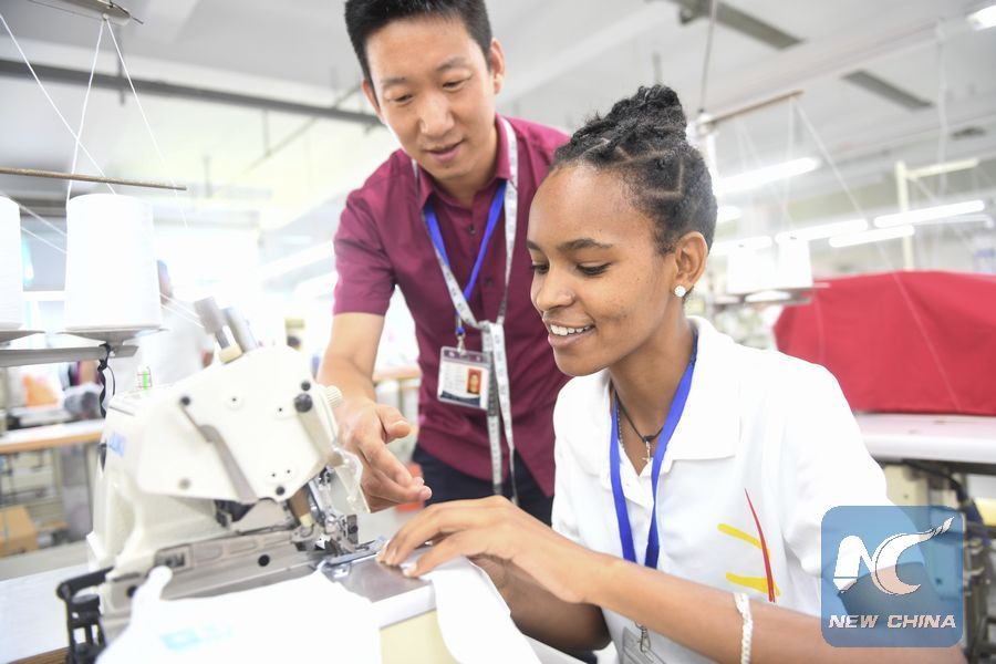 File photo shows an Ethiopian worker of ANTEX Fashion Group learns sewing skill at a plant in Huzhou, east China's Zhejiang Province, Aug. 30, 2018.(Xinhua/Weng Xinyang)