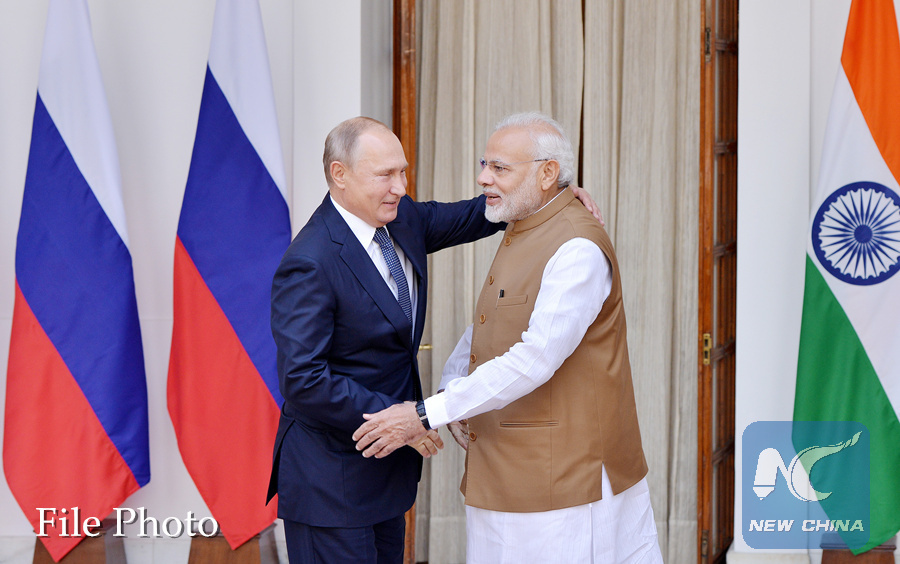 MOSCOW, Jan. 7 (Xinhua) -- Russian President Vladimir Putin and Indian Prime Minister Narendra Modi held a phone conversation and discussed important issues of bilateral and international agendas, including joint efforts in the fight against terrorism, the Kremlin said Monday.