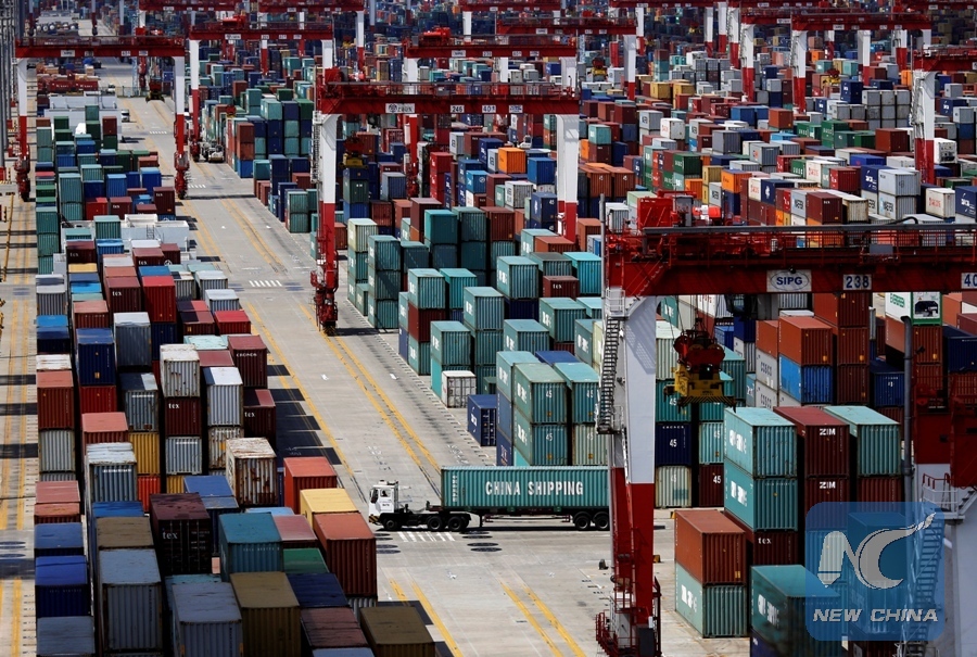 A container truck drives in the container area at the Yangshan Deep Water Port, part of the newly announced Shanghai Free Trade Zone, south of Shanghai September 26, 2013. (REUTERS Photo)