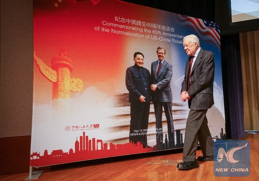 ATLANTA, Jan. 18 (Xinhua) -- The 40-year-long diplomatic relationship between the United States and China has contributed to peace, stability and prosperity of both countries and beyond, former U.S. President Jimmy Carter said here Friday.