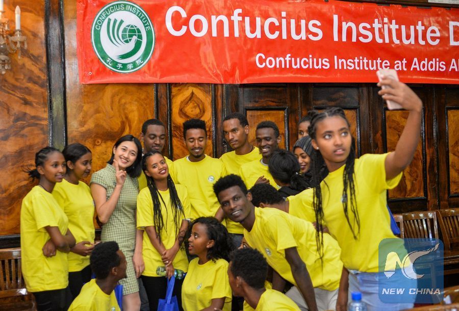 File photo shows Ethiopian students take a selfie at the Confucius Institute at Addis Ababa University (AAU) while celebrating Confucius Institue Day in Addis Ababa, capital of Ethiopia, Nov.13, 2018. (Xinhua/Michael Tewelde)