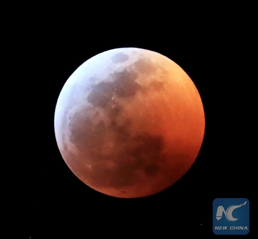 The moon is seen during a lunar eclipse in Washington, the United States, on Jan. 20, 2019. (Xinhua/Liu Jie)