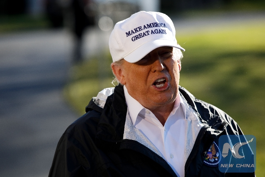 File Photo: U.S. President Donald Trump speaks to reporters before leaving the White House in Washington D.C., the United States, on Jan. 10, 2019. (Xinhua/Ting Shen)