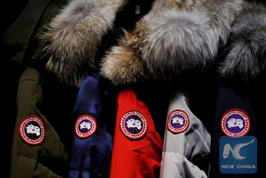 File Photo: Jackets hang in the showroom of the Canada Goose factory in Toronto, Ontario, Canada, February 23, 2018. (Xinhua/Reuters)