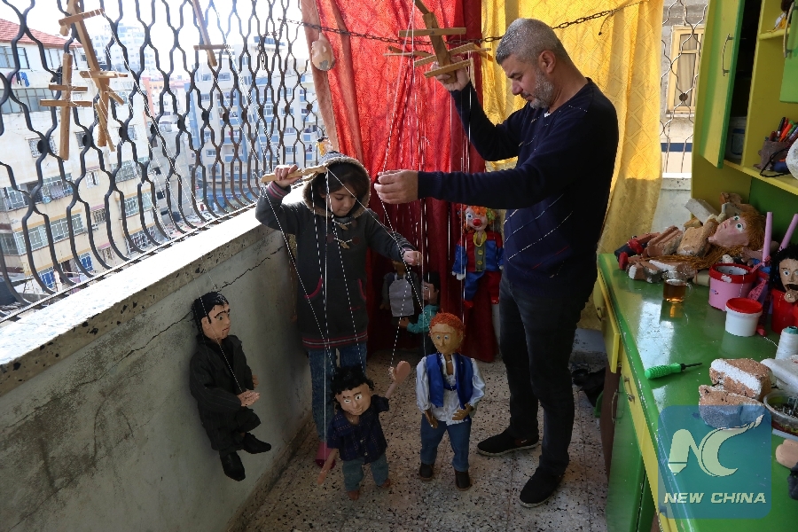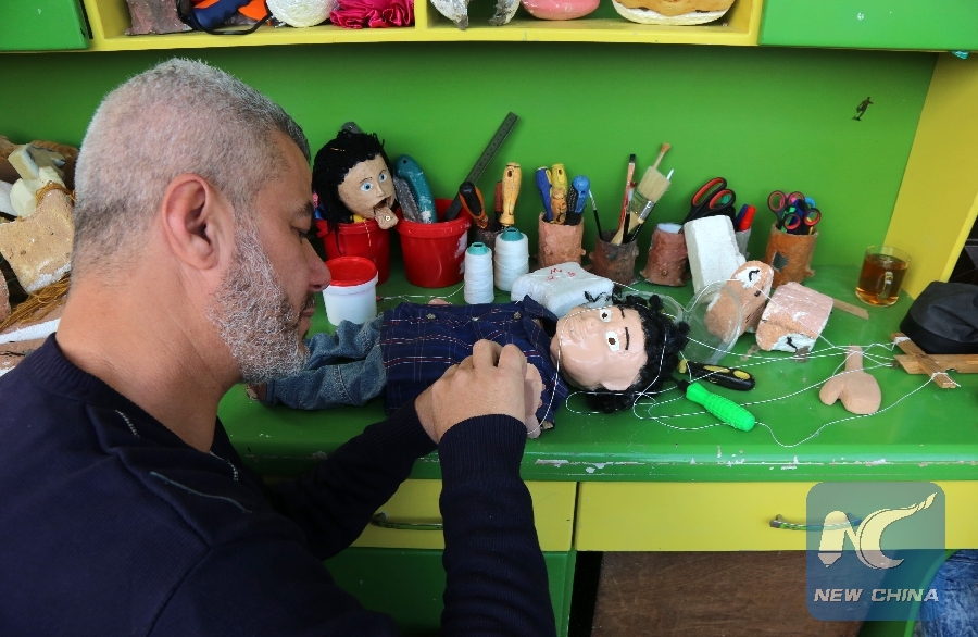 GAZA, Jan. 25 (Xinhua) -- Mahdi Karira, a 39-year-old Palestinian from the Gaza Strip, is a master at making the marionette, who hopes to promote the art of puppet theater in the coastal enclave.