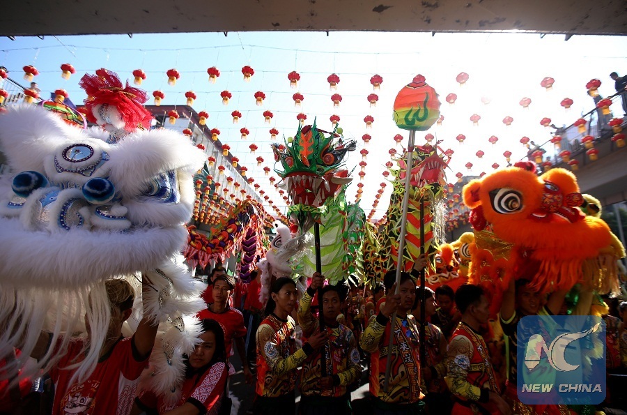 YANGON, Feb. 5 (Xinhua) -- The celebrations of the Chinese Lunar New Year kicked off on a grand scale in Chinatown in Yangon, Myanmar on Tuesday, the first day of the Year of the Pig in China's lunar calendar.