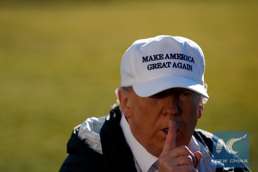 File Photo: U.S. President Donald Trump speaks to reporters before leaving the White House in Washington D.C., the United States, on Jan. 10, 2019. (Xinhua/Ting Shen)