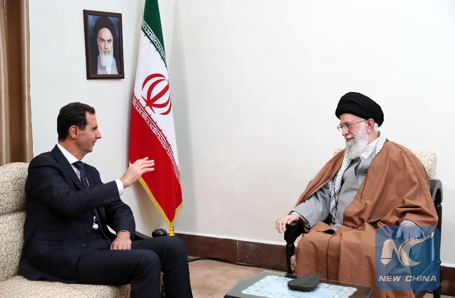Iran's Supreme Leader Ayatollah Ali Khamenei (R) meets with visiting Syrian President Bashar al-Assad in Tehran, Iran, on Feb. 25, 2019. (Xinhua/Iran's Supreme Leader office)