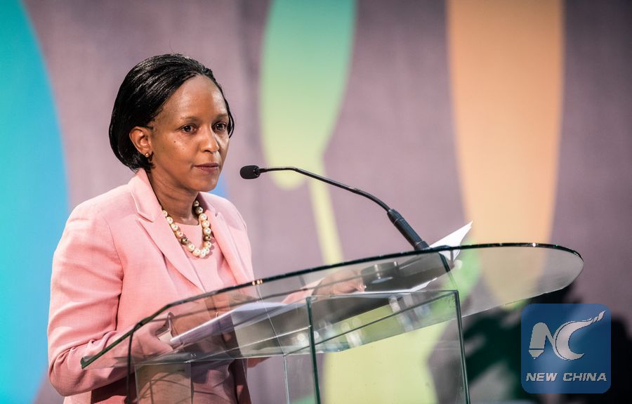 Acting Executive Director of the United Nations Environment Programme (UNEP) Joyce Msuya addressing the opening ceremony of the second global session of the UN Science-Policy-Business Forum on the Environment in Nairobi, Kenya, March 9, 2019. (Xinhua/Zhang Yu)