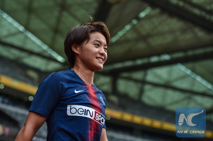 Chinese striker Wang Shuang watches Paris Saint-German women's team training in Shenzhen, China on August 3, 2018 after joining the French club on the same day. (Mao Siqian/Xinhua)
