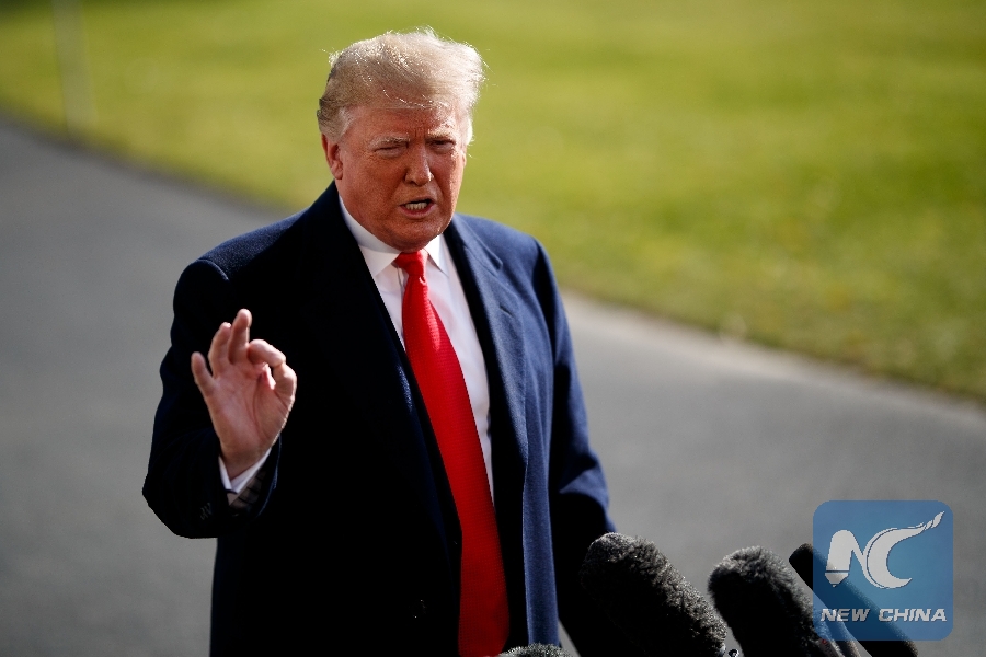 U.S. President Donald Trump speaks to reporters before leaving for the G20 Summit in Argentina from the White House in Washington D.C., the United States, on Nov. 29, 2018. (Xinhua/Ting Shen)