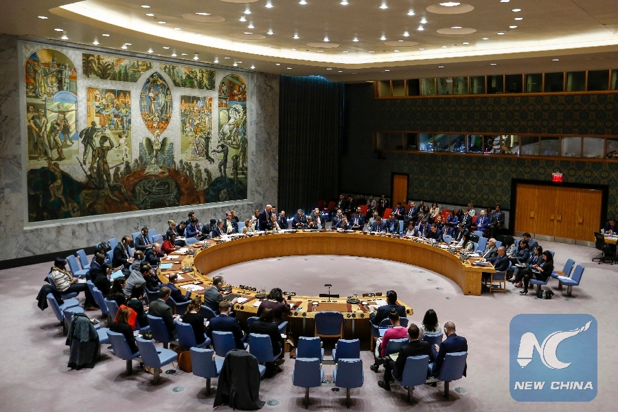 The United Nations Security Council holds a meeting on the situation in the Middle East at the UN headquarters in New York March 26, 2019. (Xinhua/Li Muzi)
