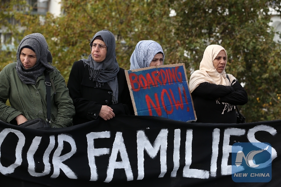 File Photo: Refugees seeking reunion with family members in Germany take part in a hunger strike in Athens, Greece, on Nov. 1, 2017. (Xinhua/Marios Lolos)