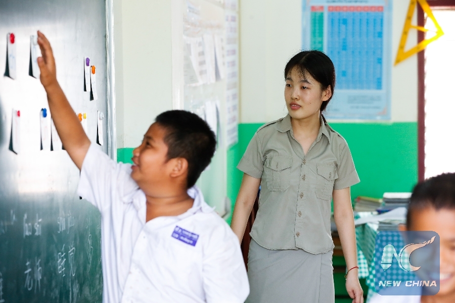 VIENTIANE, April 18 (Xinhua) -- "It was in the second week I came to Laos. It was hot, and even when I stood under an electric fan, I sweated. Seeing this, my students stood in a circle around me and fanned me using their notebooks," said 24-year-old Lin Jieyu, a volunteer Chinese language teacher at Nongping Primary School.