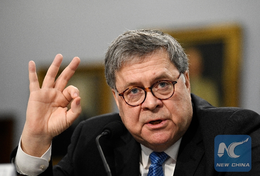 File Photo: U.S. Attorney General William Barr testifies before the Subcommittee on Commerce, Justice, Science, and Related Agencies, in Washington D.C., the United States, on April 9, 2019. (Xinhua/Liu Jie)