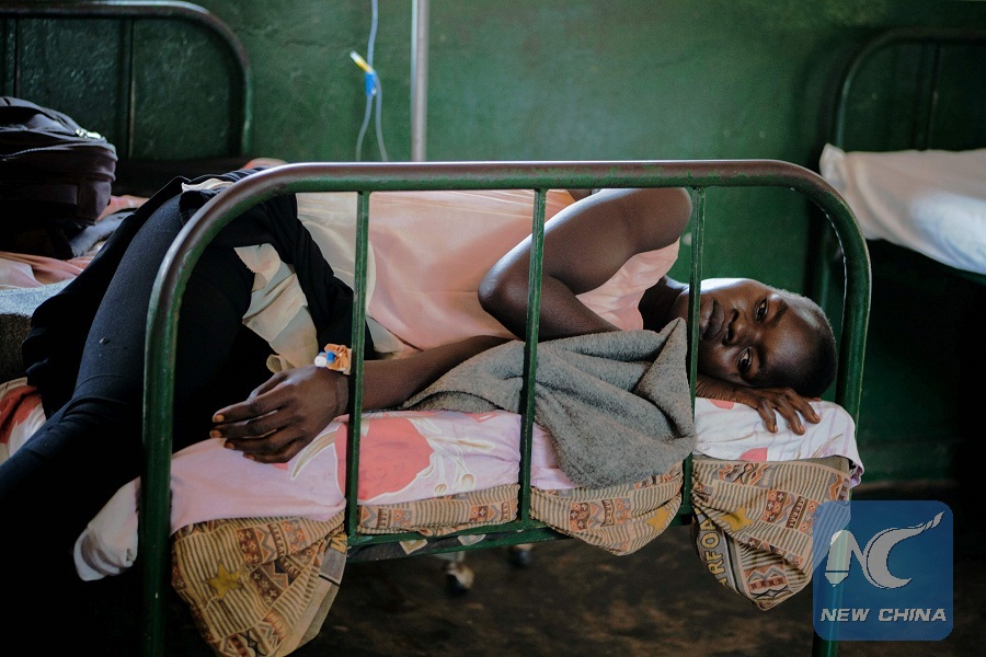 A patient rests on a bed after being discharged from the malaria ward at Panyadoli Health Center III in Kiryandongo refugee settlement, northwestern Uganda, on April 11, 2017. (AFP PHOTO/Esther MABABZI)