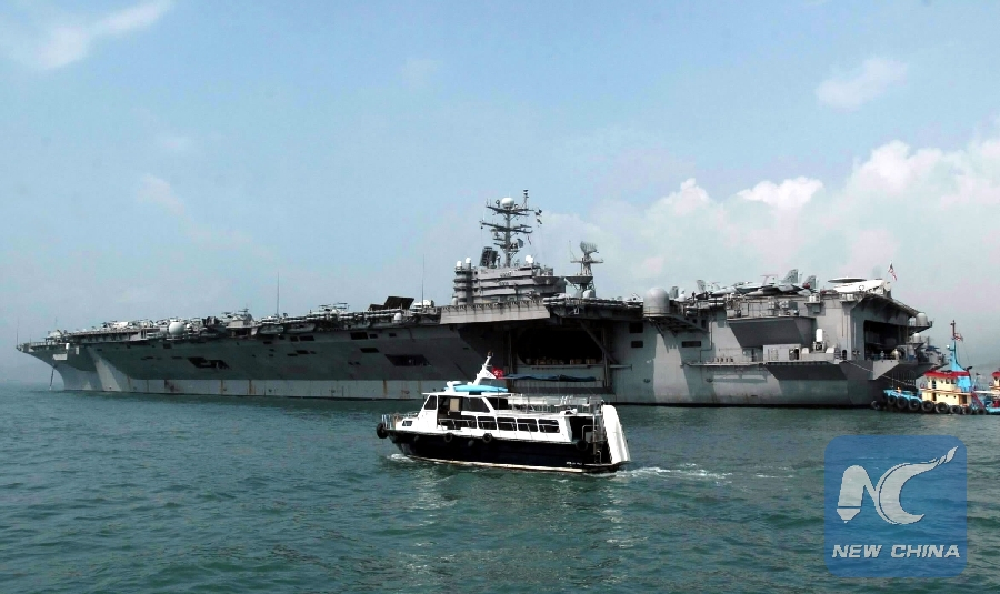 The photo taken on April 6, 2006 shows the nuclear-powered U.S. aircraft carrier USS Abraham Lincoln in Hong Kong, south China. (Xinhua/Tao Ming)