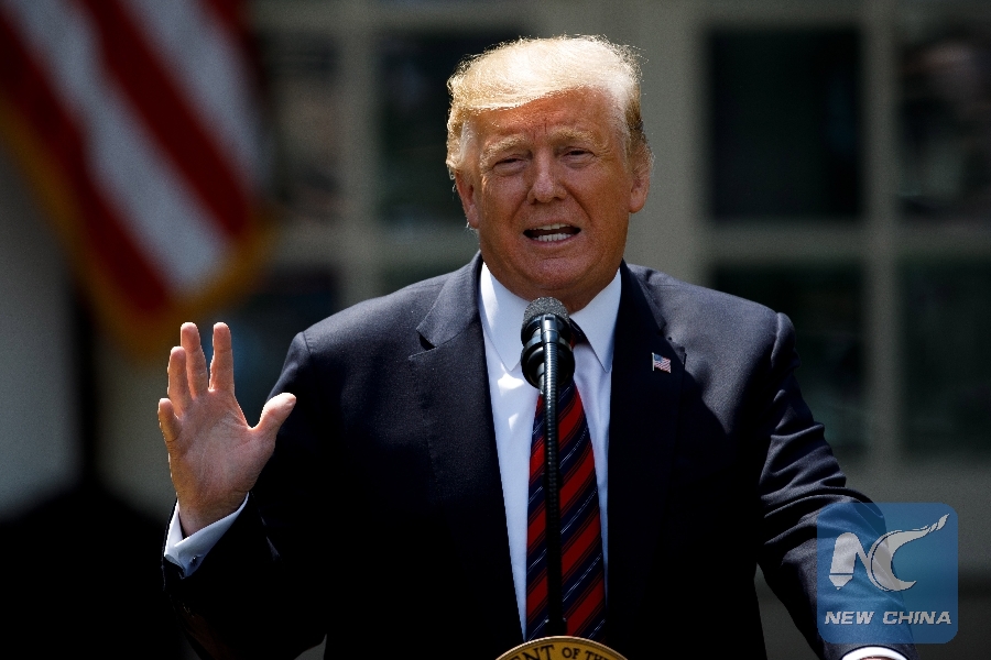 U.S. President Donald Trump speaks regarding immigration reform at the White House in Washington D.C., the United States, on May 16, 2019. Donald Trump unveiled a plan on Thursday to reform the nation's immigration system, intended to favor high-skilled immigrants and restrict family-based migration. (Xinhua/Ting Shen)