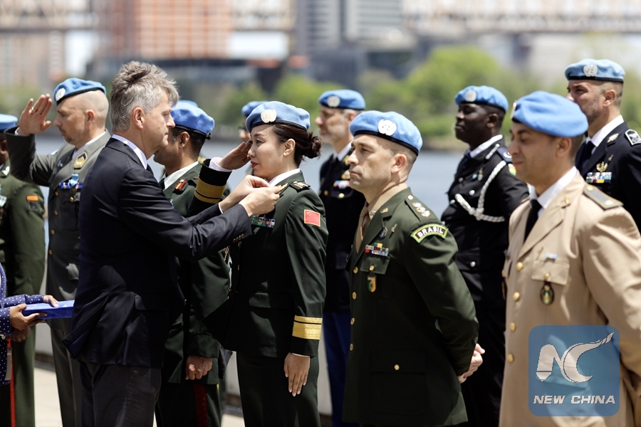 UNITED NATIONS, May 24 (Xinhua) -- Two Chinese military officers on Friday were awarded together with 28 others the United Nations Peacekeeping Medal for their contributions to the UN peacekeeping effort.