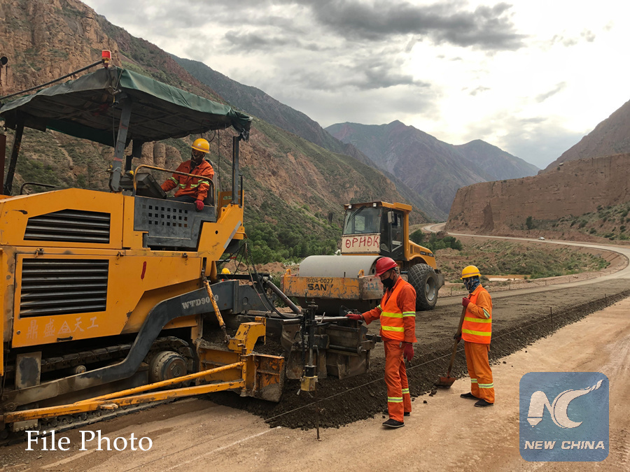 Photo taken on May 24, 2019 shows the construction site of a road built by a Chinese company in Jalal-Abad, Kyrgyzstan. (Xinhua/Ma Xiaocheng)