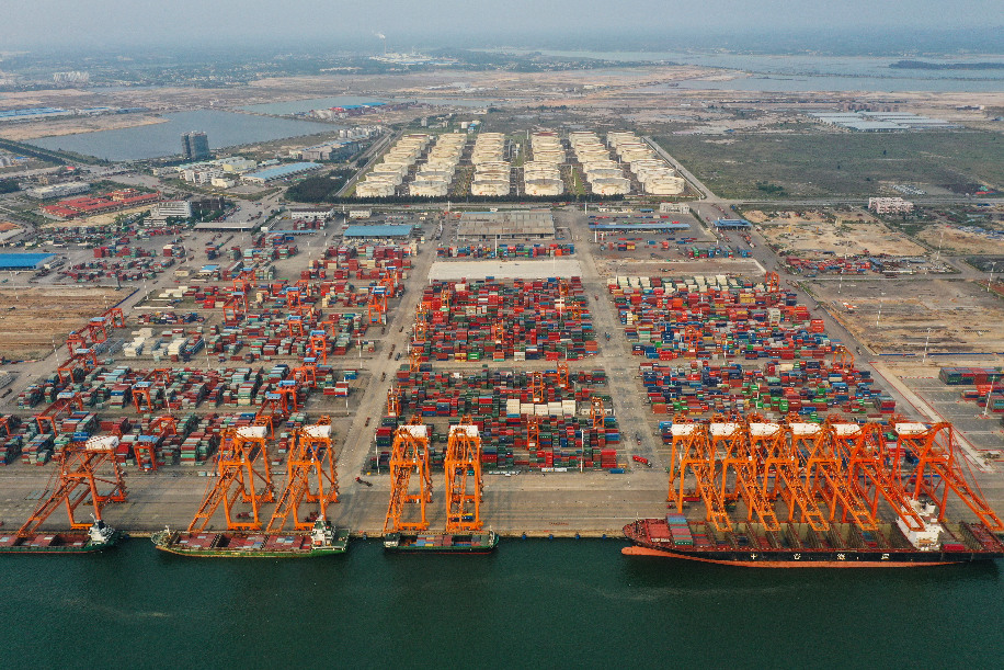 Photo taken on April 11, 2019 shows a container wharf at Qinzhou port in south China's Guangxi Zhuang Autonomous Region. (Xinhua/Cao Yiming)
