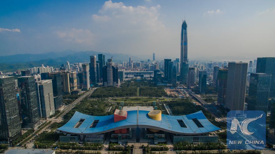 An aerial photo taken on Aug. 23, 2015 shows the Futian District in Shenzhen, south China's Guangdong Province. (Xinhua/Mao Siqian)