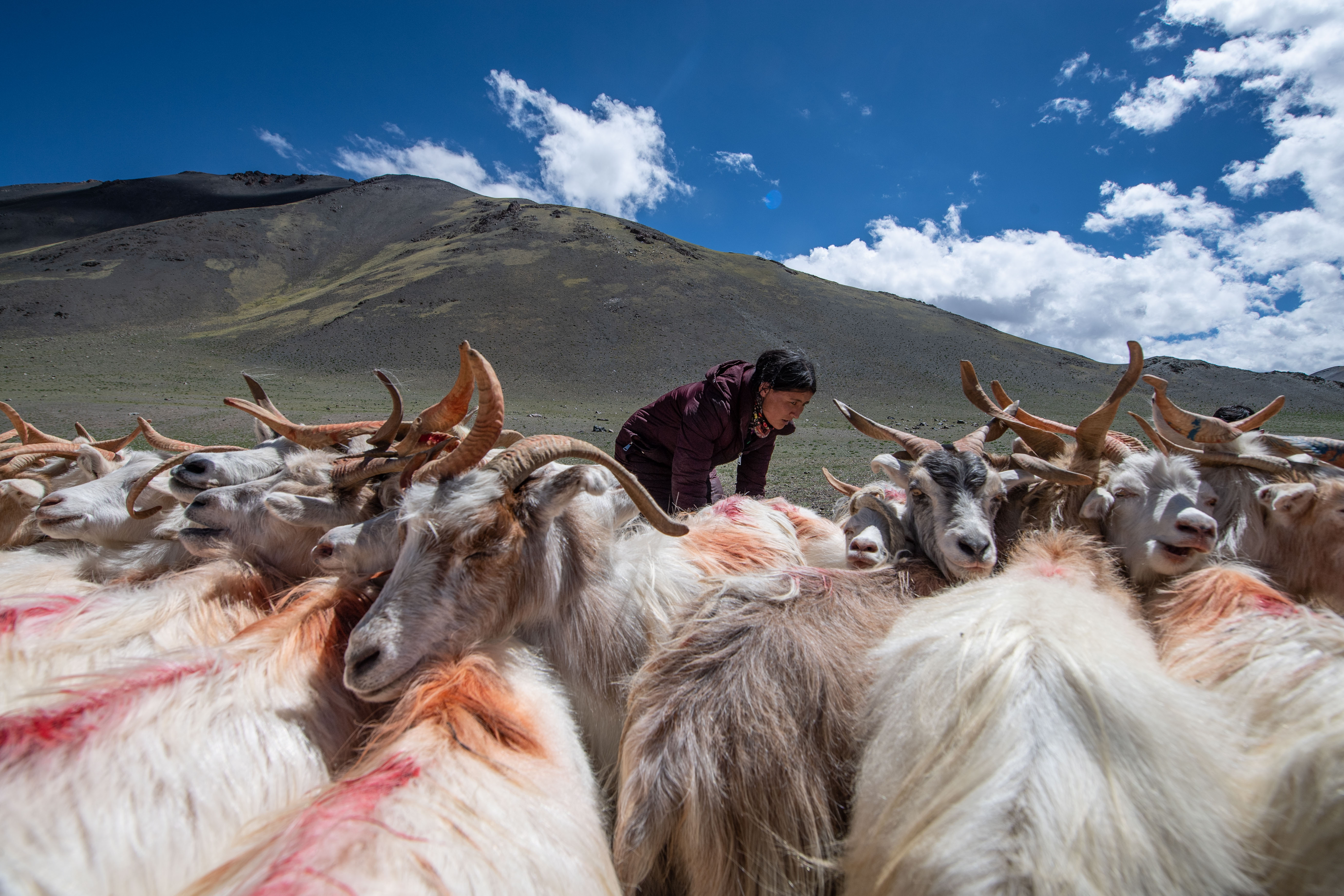 A herdswoman milks sheep in Rutog County of Ngari Prefecture, southwest China's Tibet Autonomous Region, Aug. 4, 2019.(Xinhua/Jigme Dorje)