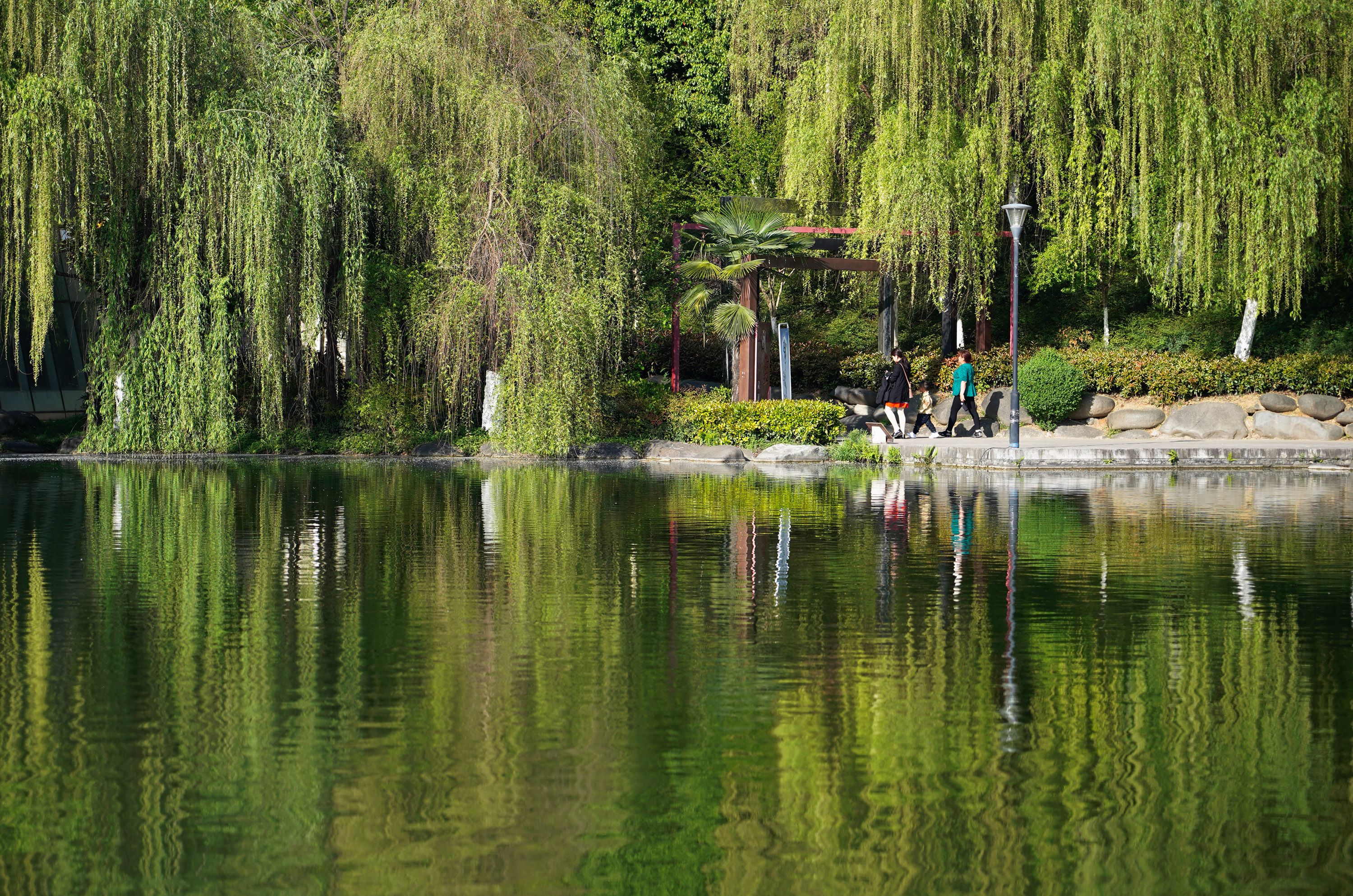 People take a walk at a park in Ankang City, NW China's Shaanxi Province. (Xinhua/Shao Rui)