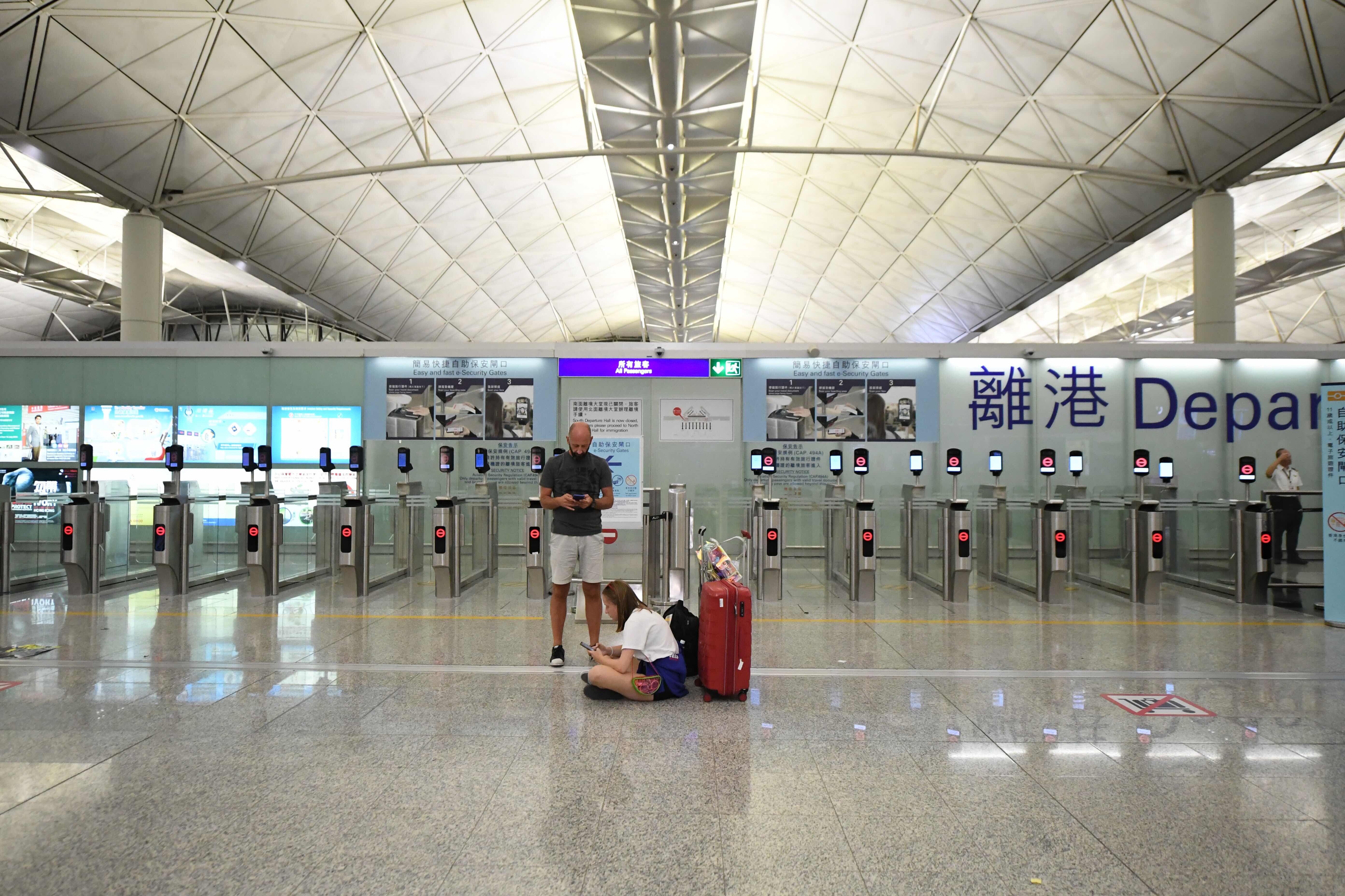 Stranded passengers are seen at Hong Kong International Airport in Hong Kong, south China, Aug. 12, 2019. (Xinhua/Lui Siu Wai)