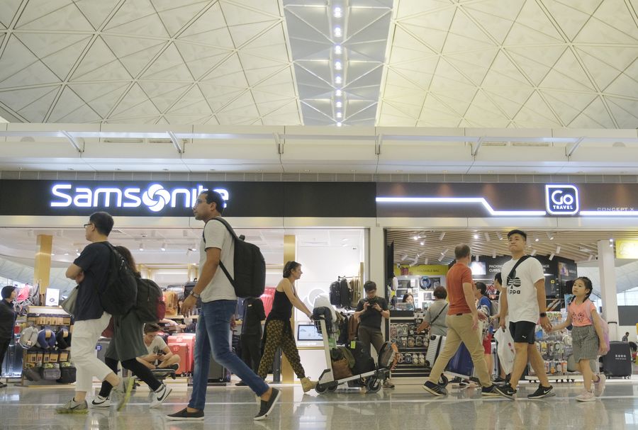 Passengers are seen at Hong Kong International Airport in Hong Kong, south China, Aug. 14, 2019. (Xinhua/Wang Shen)