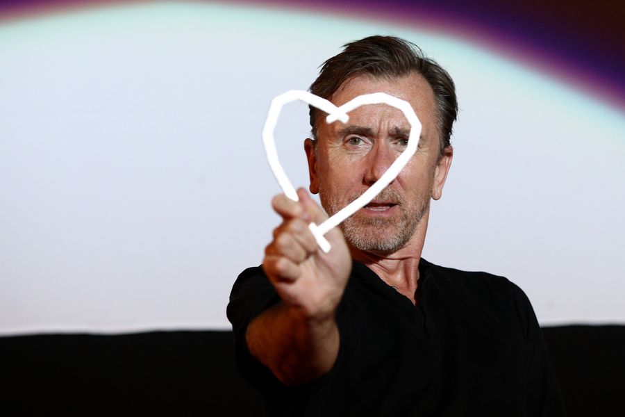 British actor Tim Roth poses with the Honorary Heart of Sarajevo award during the Sarajevo Film Festival in Sarajevo, Bosnia and Herzegovina, on Aug. 20, 2019. (Photo by Nedim Grabovica/Xinhua)